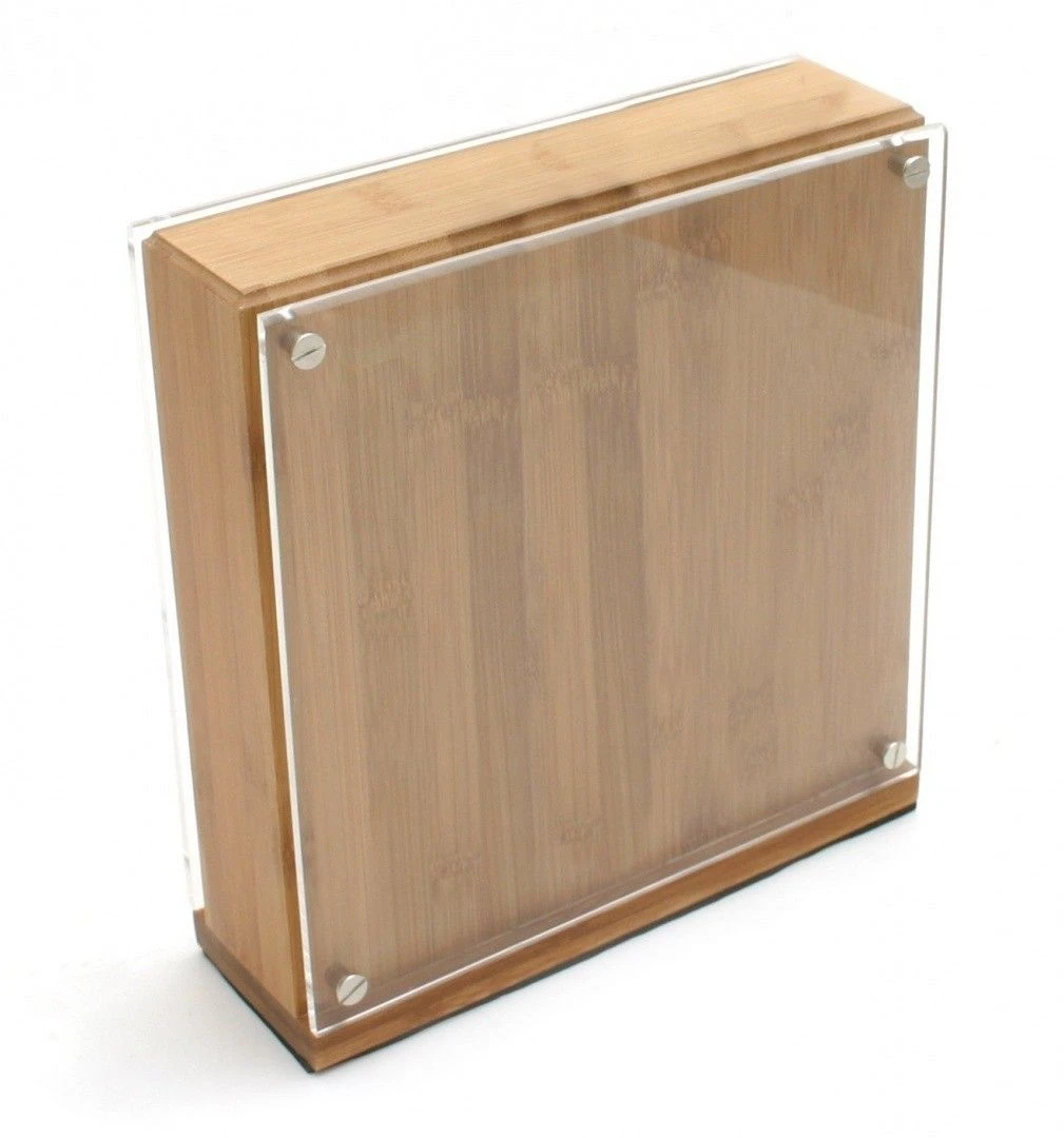 The block itself is made from high quality compressed bamboo and has a see-through perspex panel on each side. The knives are kept in place by magnets that are inside the central block. The perspex panels are scratch-resistant, so you don’t have to worry about damaging them when you’re inserting your knives.