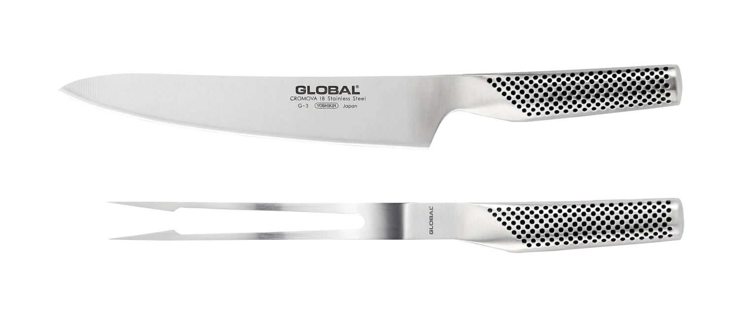 Slice your way to a perfectly cooked meal with the Global G313 2-Piece Carving Set.