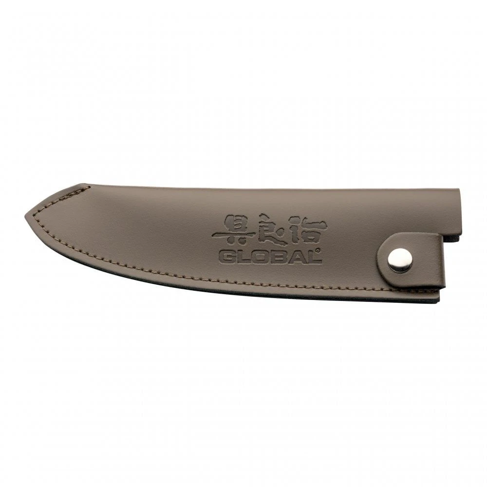 This genuine leather Global Leather Leather Knife Sheath Grey Medium sheath is designed to take Global G & GS blades up to 16cm long. The sheath has a secure clip that holds the knife in place and a button that can’t be opened by accident.