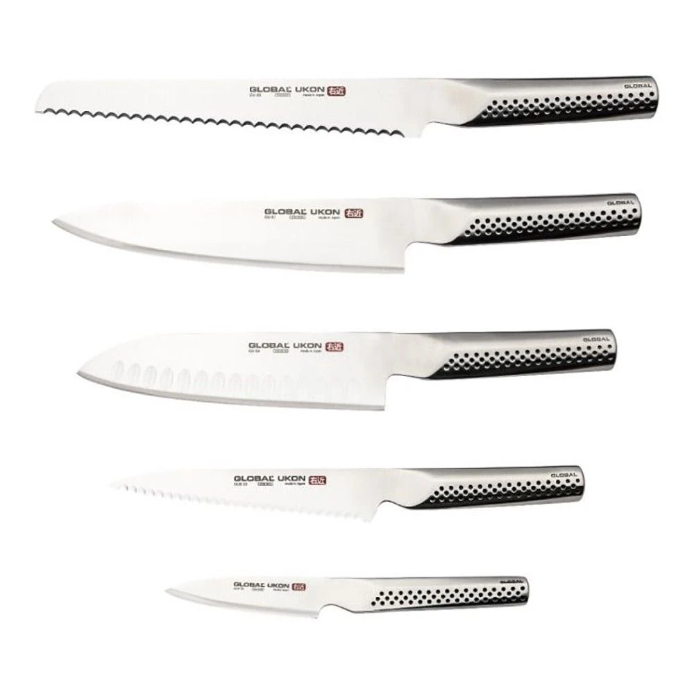 Keep your favourite cooking knives on hand at all times and in plain view whenever you need them with this beautiful Global Ukon 6 Piece Knife Block Set.