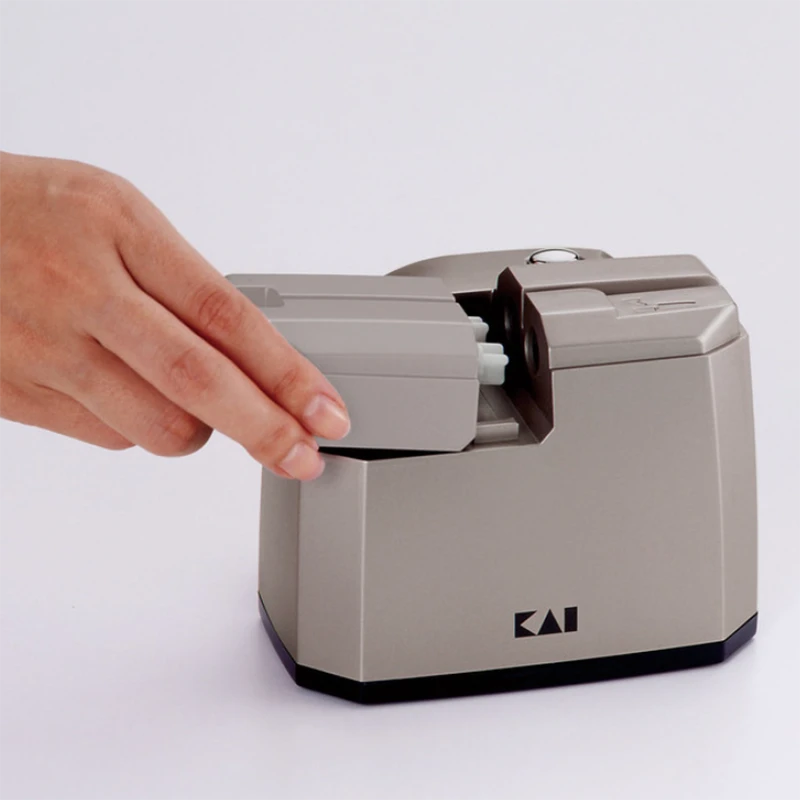 The Kai Shun Electric Knife Sharpener sharpens kitchen knives with precision in seconds. Sharpen kitchen knives quickly & professionally with this easy-to-use countertop.