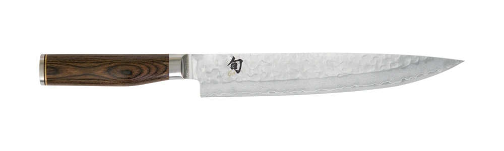 The ultra-sharp classic stainless steel Japanese blade and elegant, durable handle in this Kai Shun Premier 22.5cm Slicing Knife combine to create a timeless, classic aesthetic.