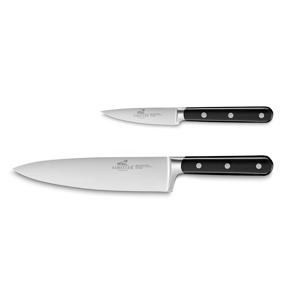 With their elegant black handle and three stainless steel rivets, this 2-piece set offers you the most commonly used knives. These Sabatier® Egide knives will become the most used knives in your kitchen as they are Ideal for a multitude of tasks.