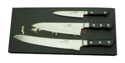 In this 3-piece starter set, you’ll get 3 different-sized knives, including a 20cm Chef’s Knife, a 12cm Pro Pairing Knife, and a 26cm Pro Bread/Roast Slicer . The ultra-sharp blades are crafted from a durable Chromium, while the handle is designed to be lightweight and easy to use.