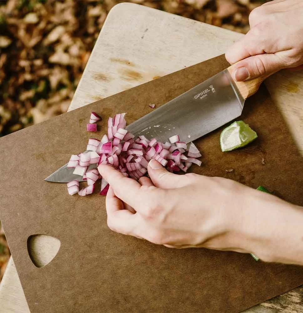The Opinel Parallèle No.118 Chef’s Knife is for cutting, slicing thinly and chopping with a see-saw movement. The blade remains rigid and stable when cutting.
