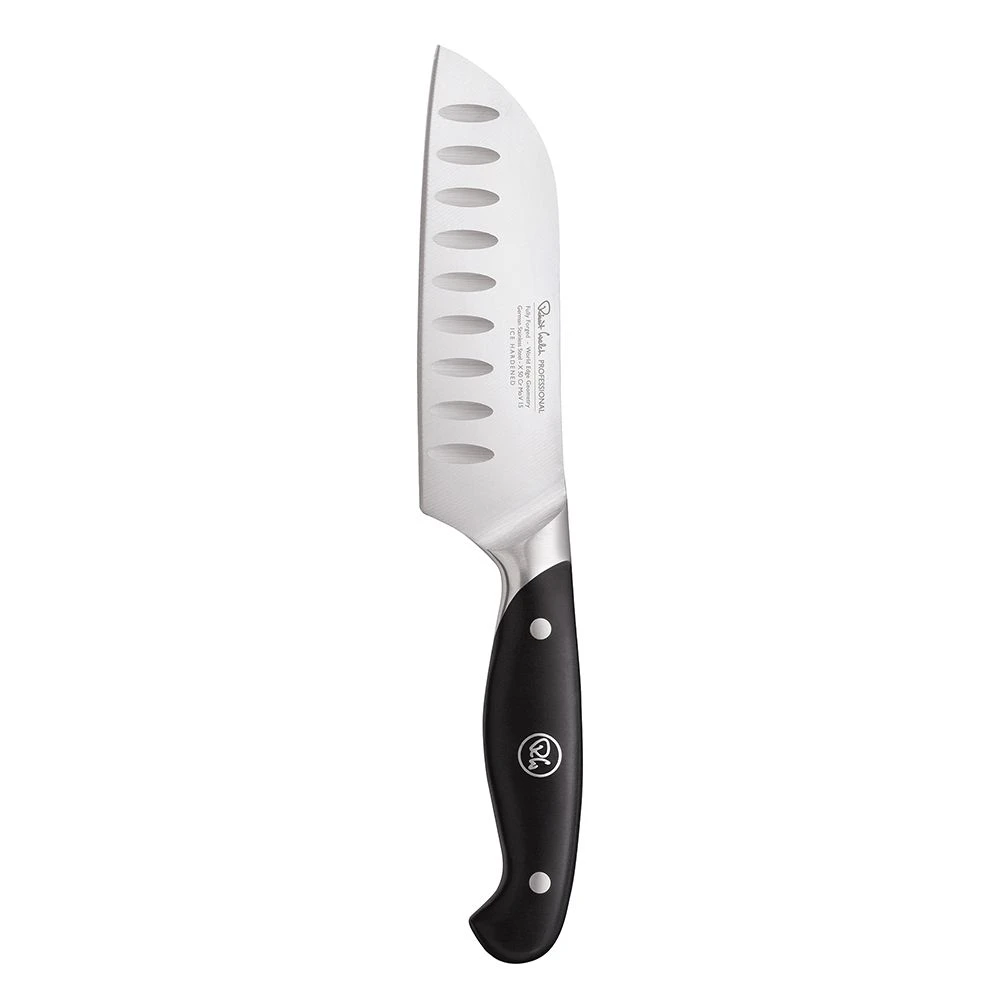 Robert Welch Professional kitchen knives feature a classic handle shape for comfort in the hand and are perfectly weighted and balanced for control in the kitchen. Comprising 11 knives for every task in the enthusiastic cook’s kitchen, Professional knives are slightly larger and heavier in the hand than our Signature knives. The handle of the 14cm santoku knife is smaller than the other knives in the Professional collection. World Edge Geometry combined with ice hardened German stainless steel provide a harder more resilient blade with exceptional longer lasting sharpness.