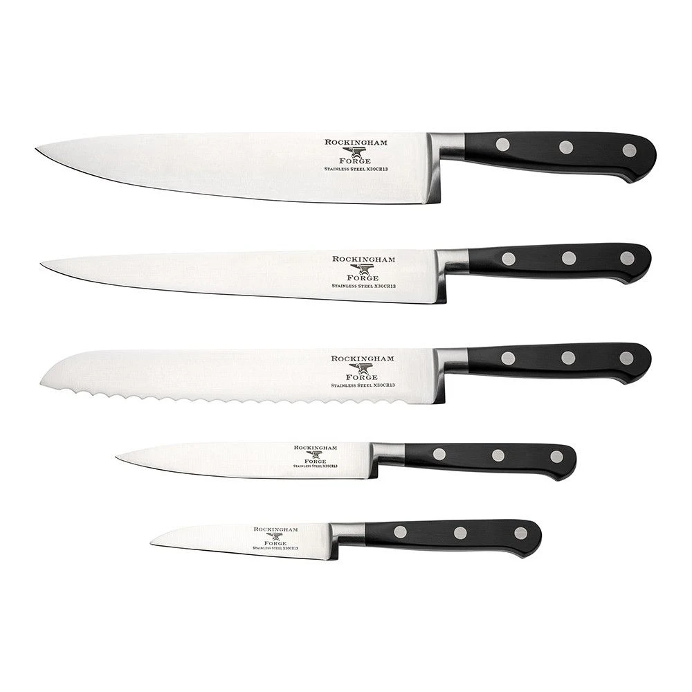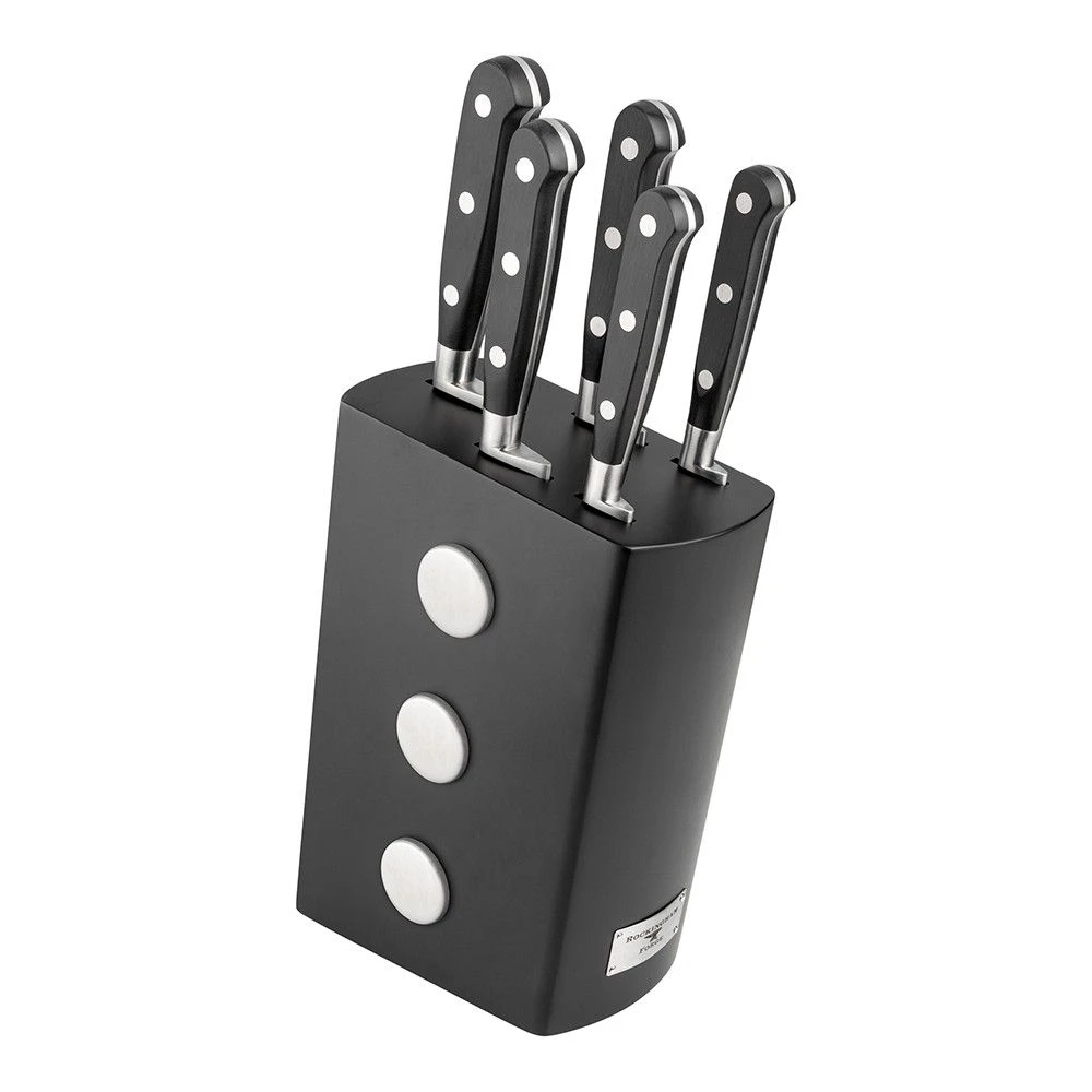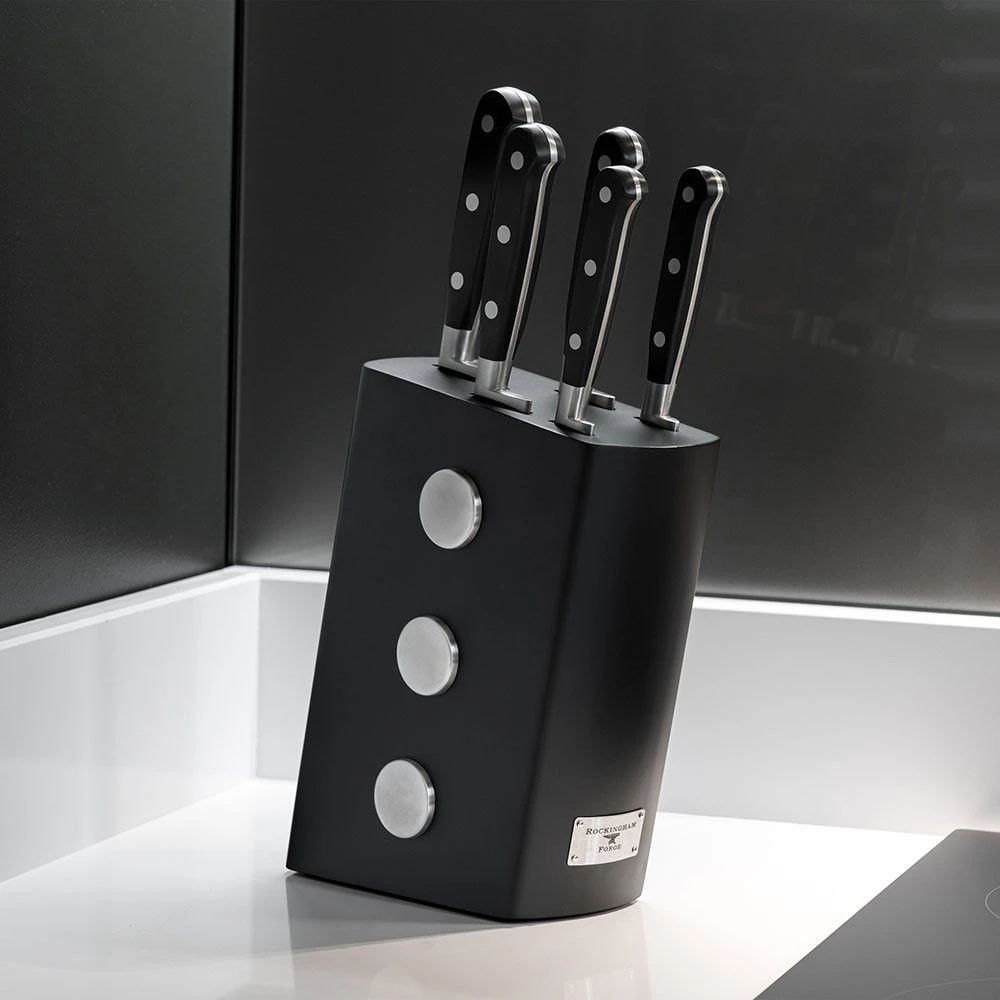 The Rockingham Forge Pro Black Series 6 Piece Knife Block Set (RF-9009/6B) is part of the Classic X30 range which brings classic tradition to the modern kitchen. The timeliness styling and high quality X30 steel combine for a contemporary classic knife range.