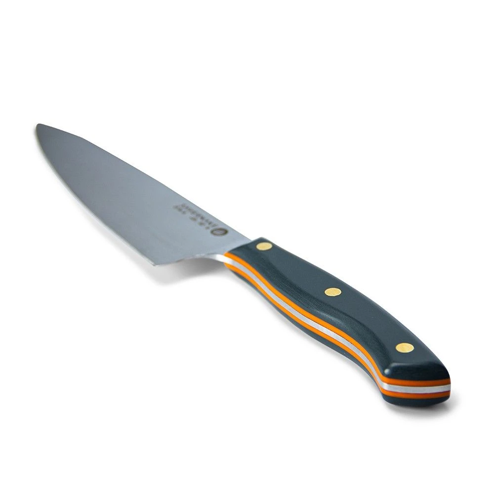 The 18cm Chef’s Knife is an exemplary take on a mid-sized European chef’s knife; comfortable, balanced and precise with a fantastic rocking action along the length of the blade. It is just as perfectly at home preparing a rack of lamb as it is a stack of turnips, and will find a home with new and experienced cooks alike.