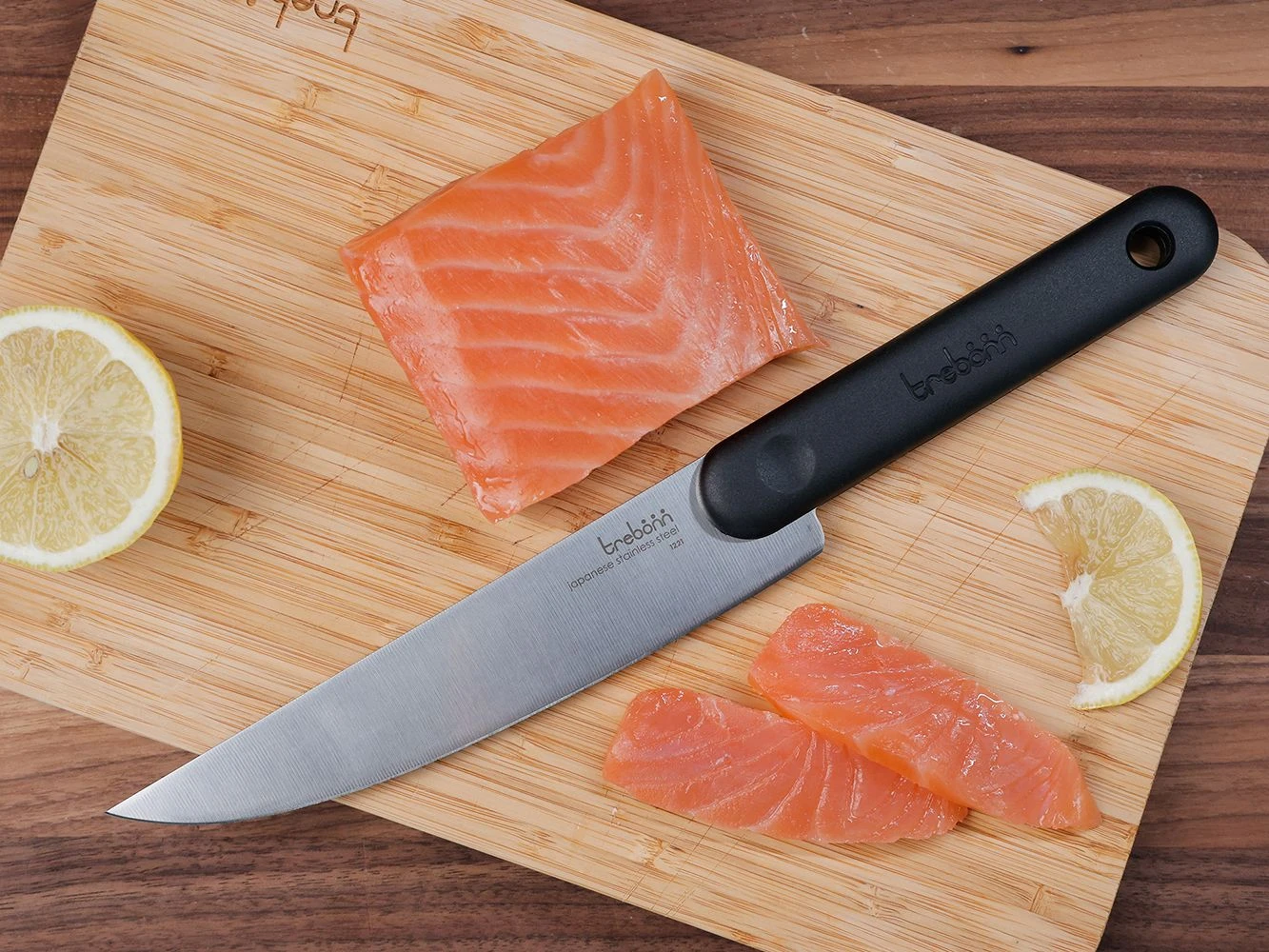 Japanese stainless steel kitchen knife with soft-touch anti-slip handle. A lightweight, flexible knife suitable for slicing meats, cold cuts and filleting.