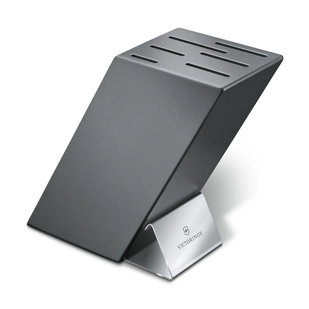 Compact and Elegant Knife Block. The Swiss Modern Knife Block adds a suave, sophisticated edge to any countertop. Crafted in beautiful beech wood and then anthracite lacquered for a distinctive modern finish, it’s set to become a future design classic.