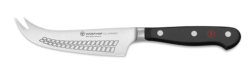The Wusthof Classic hard cheese knife has a deep forged blade with a traditional triple riveted handle.